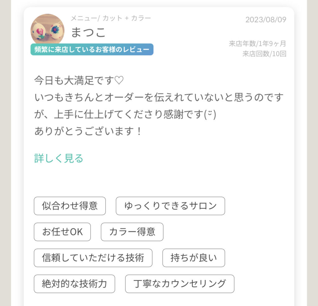 髪のうねりや悩んでいたお客様から